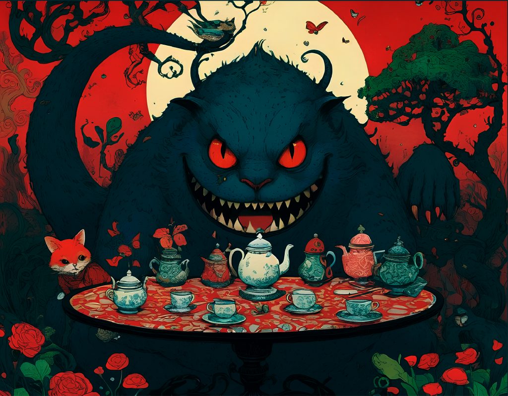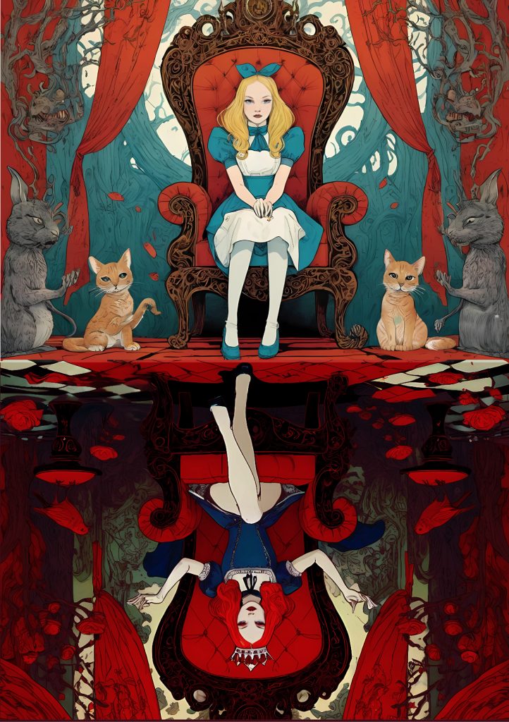 Pour nous aider, nos professeurs nous ont guidés dans un projet le mien consistait d’explorer mes illustrations avec la bizarrerie et les cauchemars du texte « Alice de l’autre côté du miroir », faire des illustrations tirées de contes. Le projet est toujours en cours…..