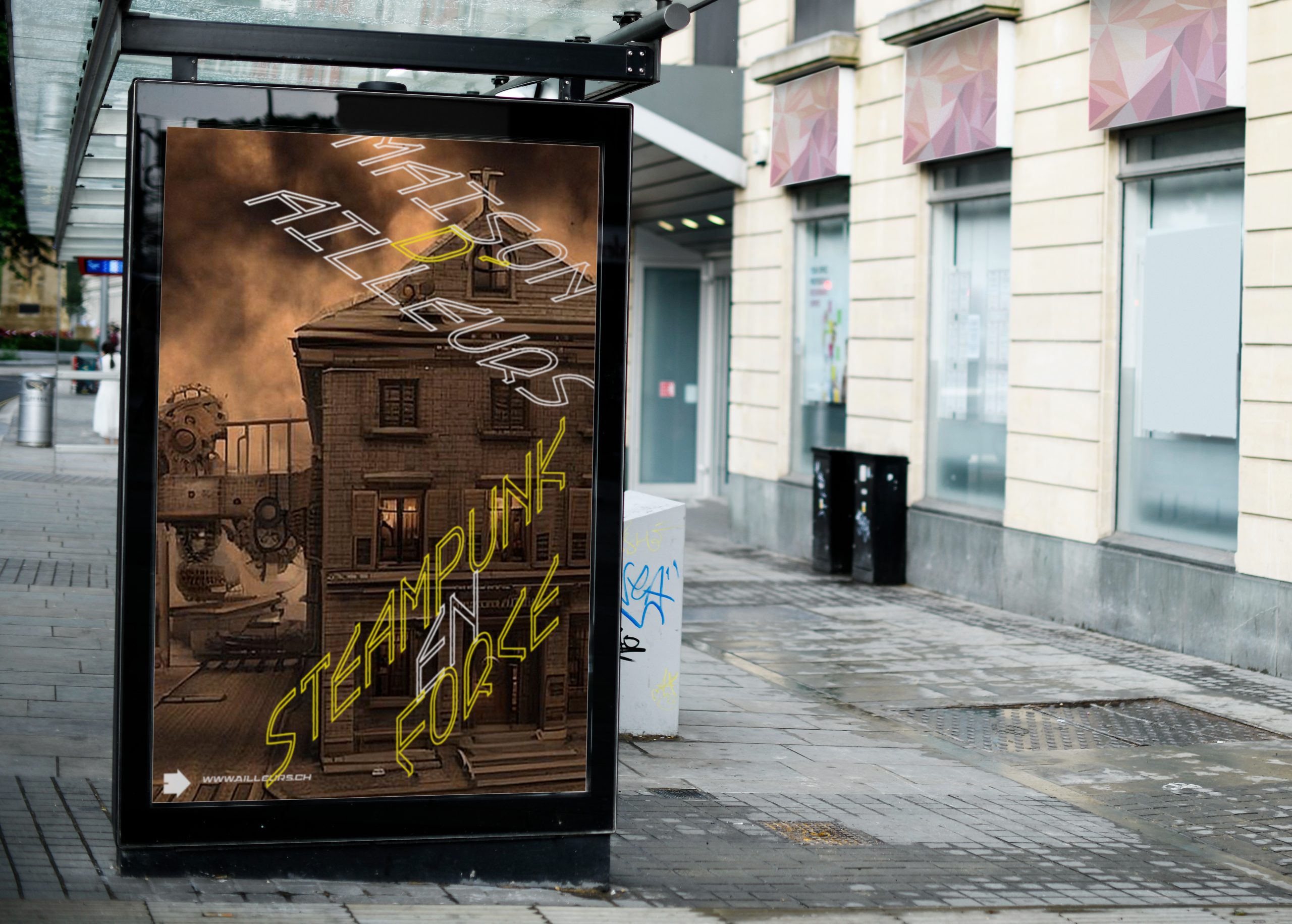 Ici, nous avons le projet de Maison d’Ailleurs qui est un exercice pratique où Maison d’ailleurs est un musée suisse de la Science Fiction. Le but est de refaire son identité visuelle. J’ai choisi de changer les affiches ainsi que le site web.