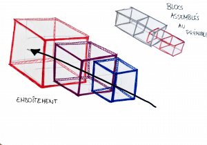 Les cubes comportent 3 tailles différentes permettant de faciliter l’emboîtement des modules et d’optimiser l’espace de rangement.