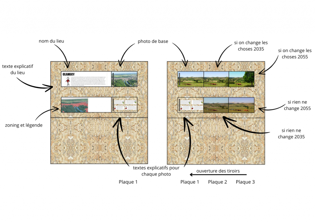 Projet de groupe qui consistait à créer une scénographie pour une exposition de photographies “demain, les paysages de la Nièvre” sur l’évolution des paysages de la Nièvre dans le future.