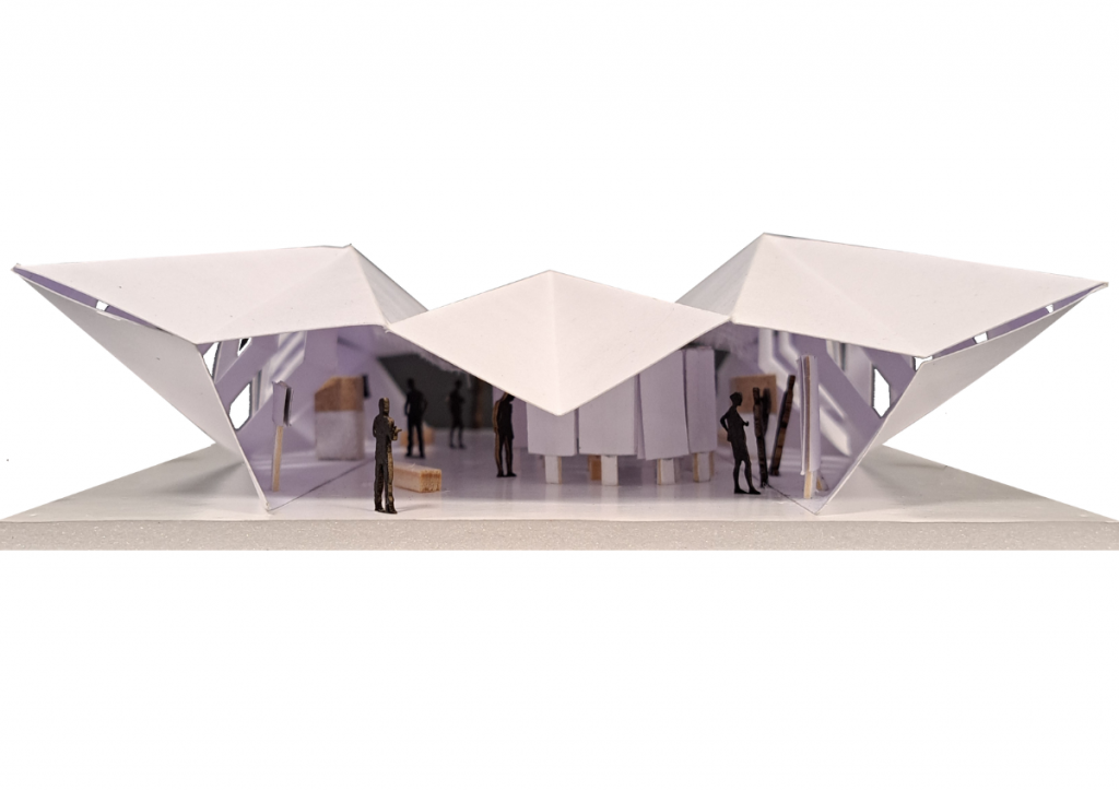 Création d’un centre d’exposition dédié au volley-ball pour les Jeux Olympiques 2024, installé sur le parvis de La Défense à Paris. L’espace a été conçu uniquement en papier et à travers des pliages.
