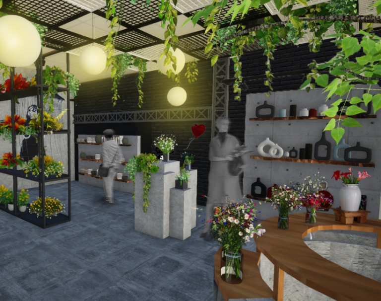 Ma boutique FLOR’ESSENCE oscille entre urbex et street art. En mettant en avant l’aspect brut et industriel des matériaux (tels que la pierre, le béton et l’acier ), j’ai recréé une